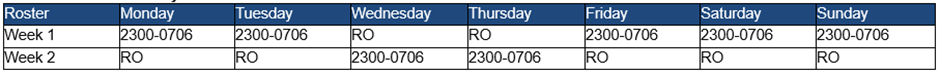 Roster Pattern, please note that this maybe subject to